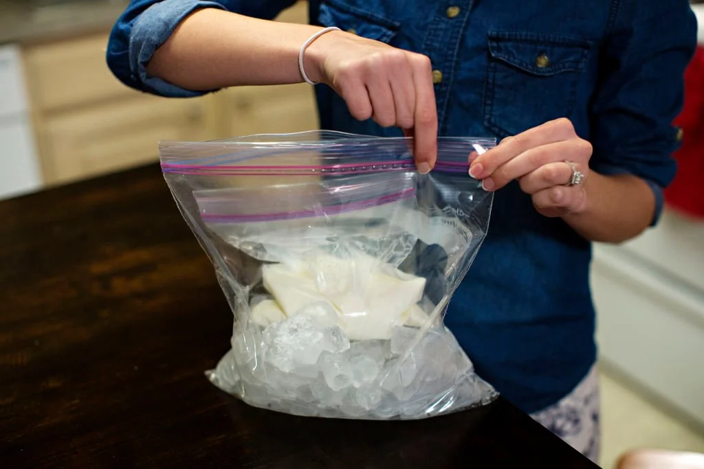 Take a large Freezer ZipLoc and add ice and coarse salt